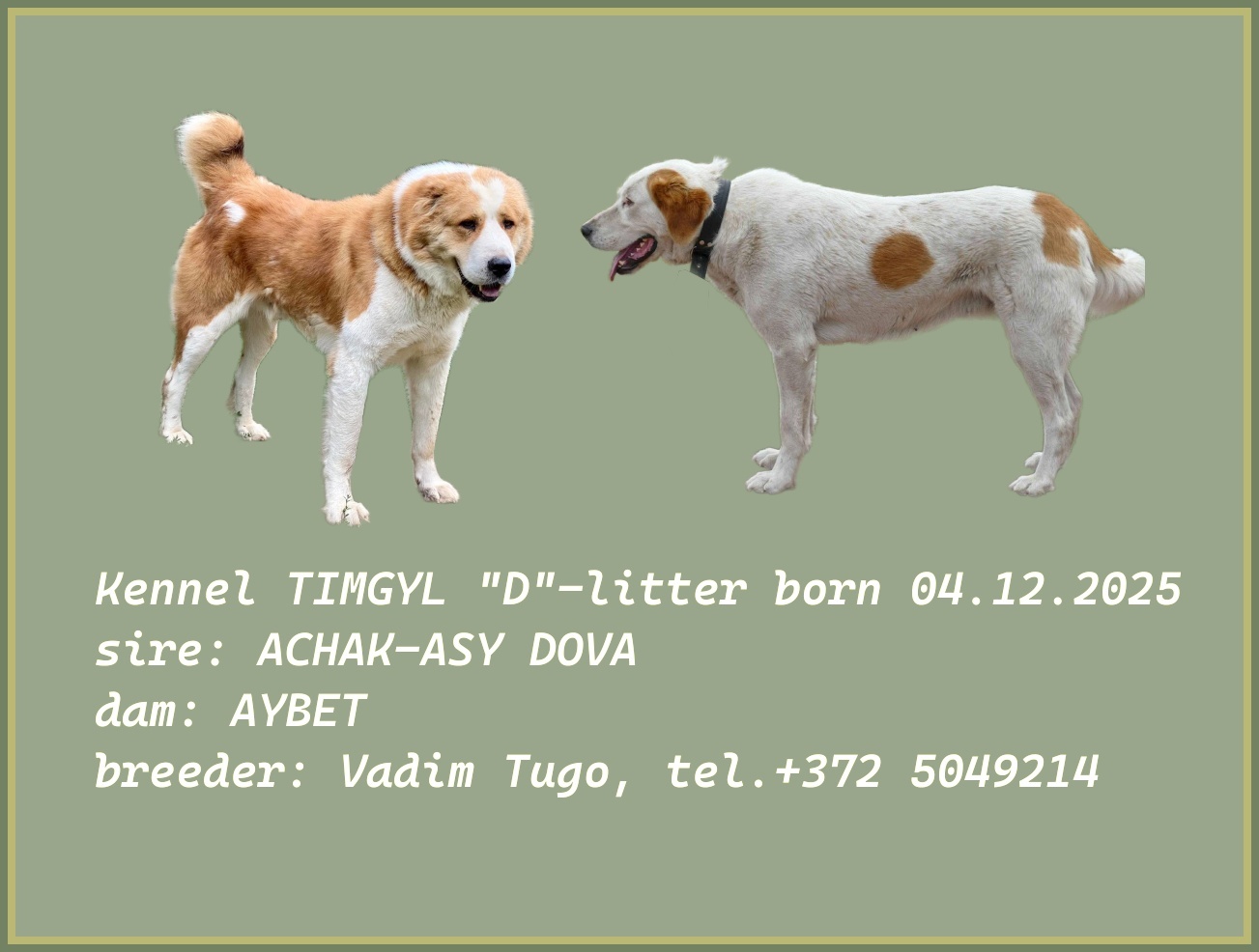 02.02.2024 Were born puppies of: ALTÕN OMAR & OGUZ-KHAN KICHI |